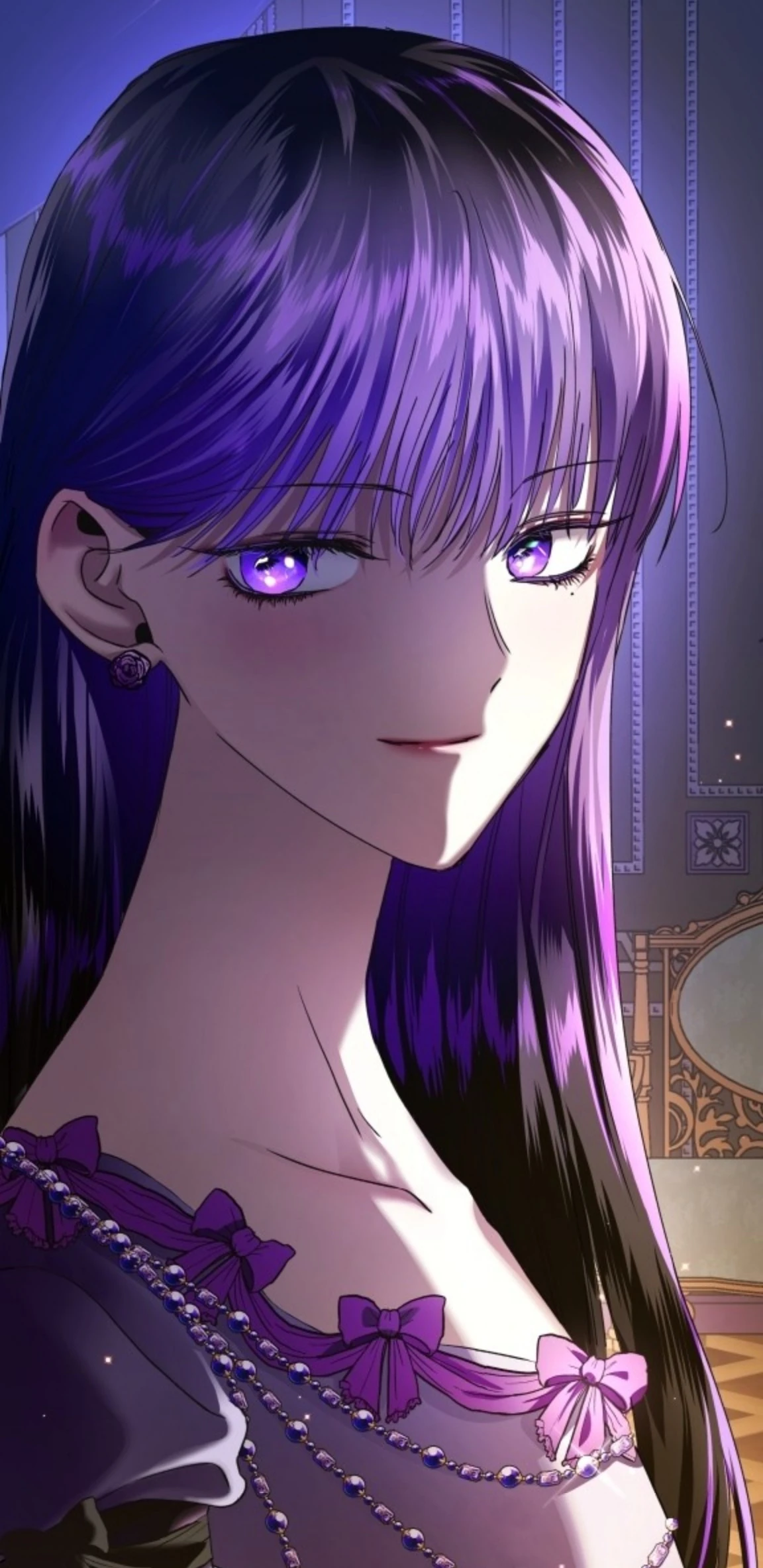 Psyche opts to wear a colorful array of lavish gowns, often in pastel or pale shades.
