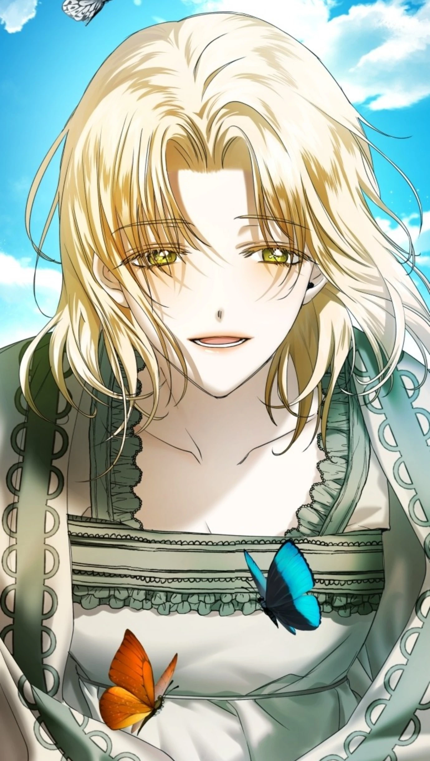 Psyche used to have wavy, blond hair that extends past her waist and is often styled with lavish accessories. She has slanted, translucent green eyes set in a soft, feminine face. Her frame is slim and willowy with gentle, frail arms.